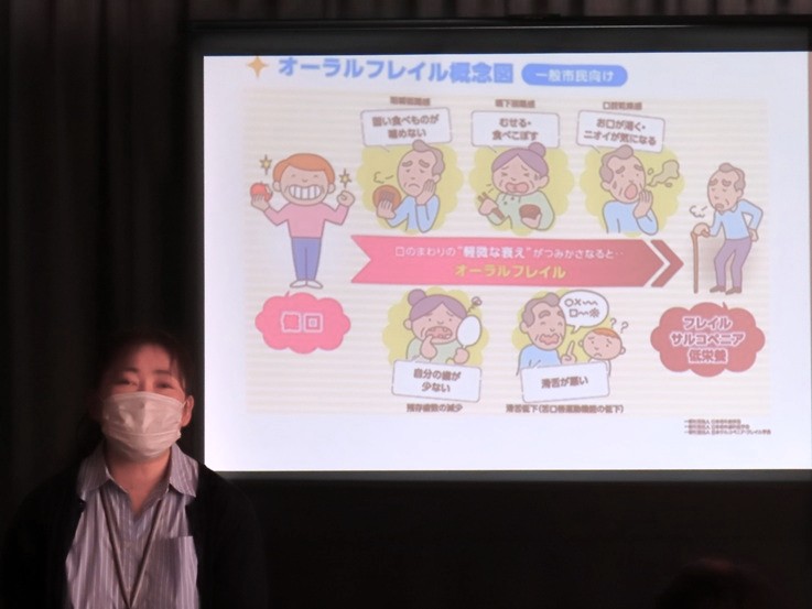 講師は、佐倉市役所福祉部 高齢者福祉課の岩本絵己さんです。岩本さんは理学療法士としても日々活動をされていて、フレイル予防の貴重なお話を伺うことができました。